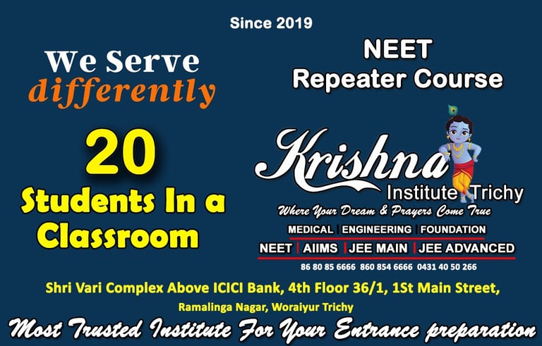 At Krishna Institute Trichy, we are committed to providing high-quality NEET coaching with a student-focused approach.