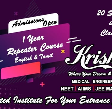 At Krishna Institute Trichy, we believe that every aspiring doctor deserves the best guidance and care. With limited batch sizes, personalized coaching, and a proven revision strategy, we ensure that each student reaches their fullest potential. Our focused approach, disciplined environment, and unwavering commitment have been delivering exceptional NEET results since 2019. Join us in turning your child’s dream into reality